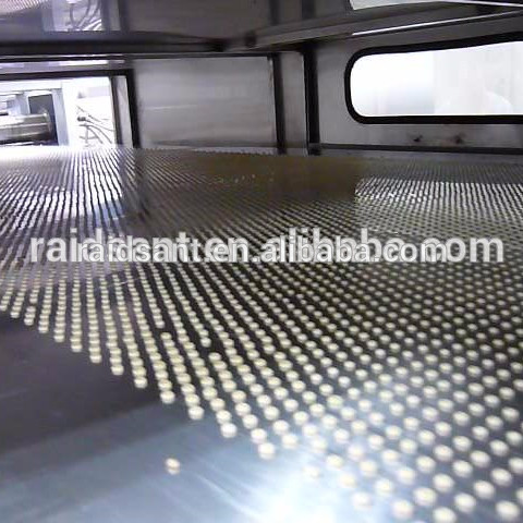 Il materiale di fusione, tramite il distributore commerciale materiale, gocciola giù alla cinghia d'acciaio che sta muovendosi uniformemente. Sotto la cinghia, c'è spruzzatore continuo e dispositivo di raffreddamento che possono raffreddarsi appena possibile, solidificare e pelletizzare il materiale sulla cinghia. Secondo la caratteristica materiale ed i requisiti trattati, esternamente girando, girare, ricambiante, tipi del portone è disponibile per la vostra scelta. Sulla base dei requisiti materiali di uso e della caratteristica, le forme di distribuzione del materiale come la sgocciolatura incontinuous, striscia continua, lo straripamento di grande ampiezza sono disponibili e con emisferico, barra, prodotti del fiocco.